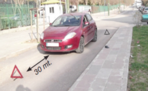 Resimde gördüğünüz ; otobüs, kamyon ve çekicilerde bulunması zorunlu olan engel işaretini hangi durumda kullanırsınız?