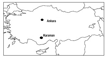 5- Aşağıdaki haritaya göre Karaman'dan Ankara'ya giden bir araç hangi yönde hareket etmiştir?